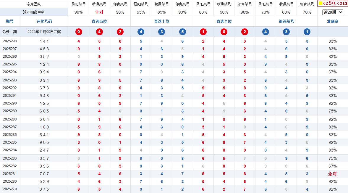 25年299期彩宝贝专家体彩P3杀号定码图表